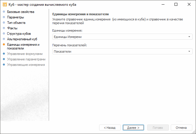 На данной странице в случае необходимости указывается справочник единиц измерения и справочник в качестве перечня показателей. Указание данных справочников позволяет реализовать автоматический пересчет единиц измерения.