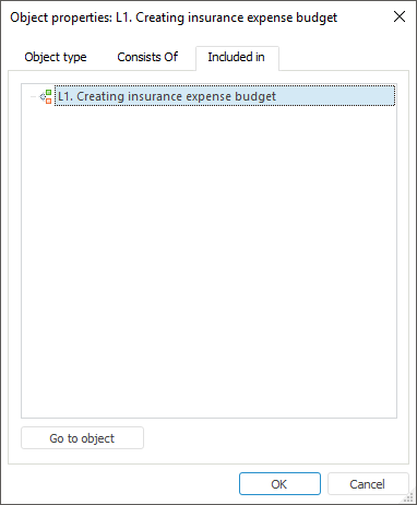 For example, properties of the L1. Creating Insurance Expenses Budget process: