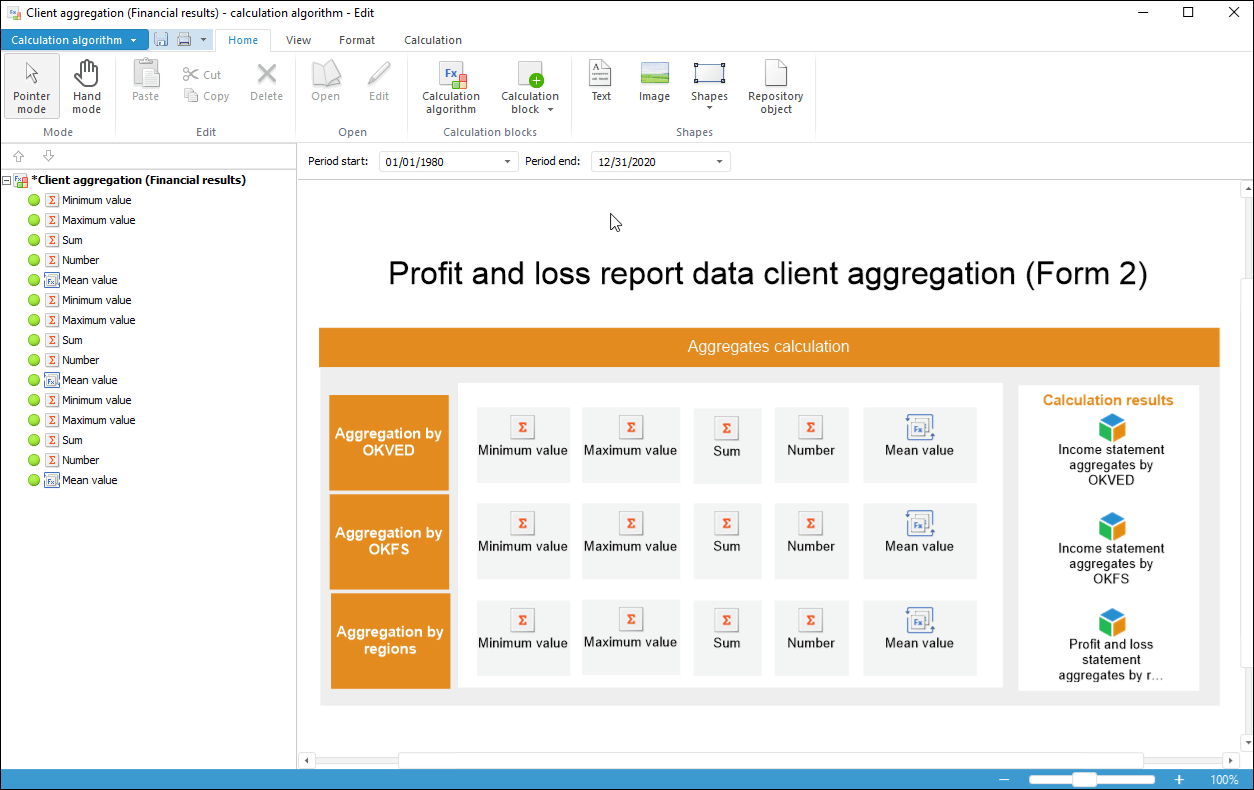 An aggregation block is used to execute aggregation by specified parameters.