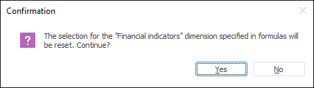 If dimension selection is used in calculation formulas, the dialog box for operation confirmation opens after the checkbox is selected: