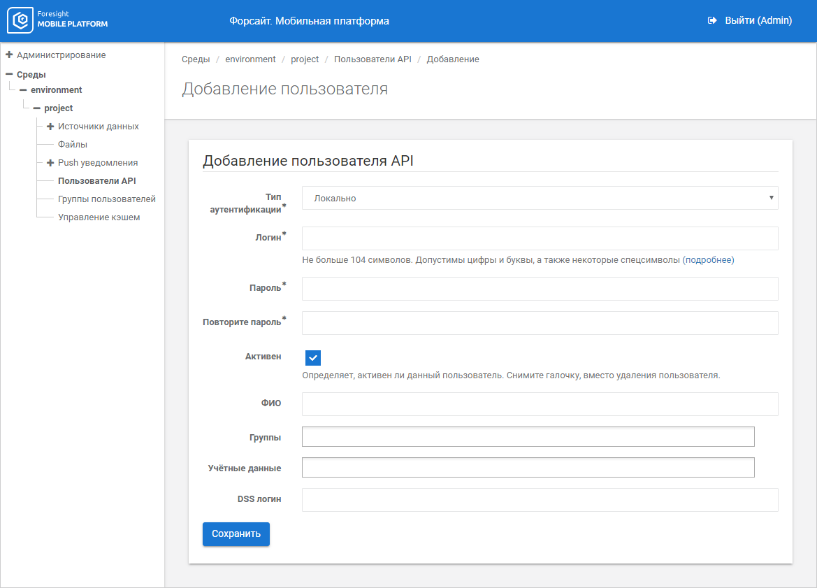 To manage credentials of API users, use the API Users subsection in the selected project: