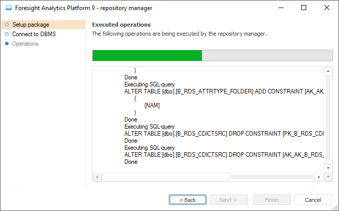 Click the Next button to start creation of an MDM repository, at the same time, the operation progress is shown: