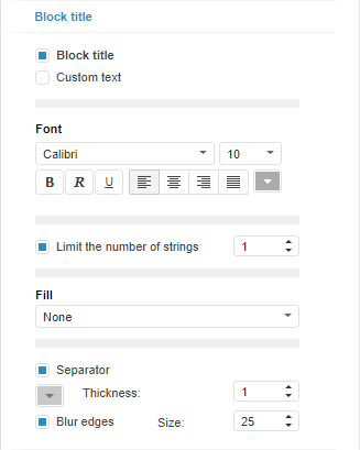The checkbox is deselected by default, and an object title is not displayed. Advanced parameters to set up title parameters are available on the side panel after the Block Title checkbox is selected.