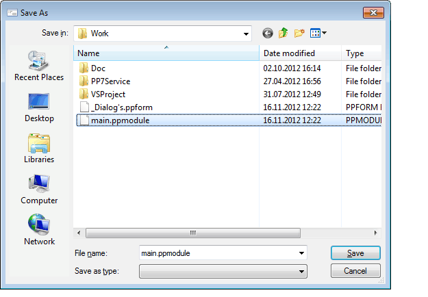 Various component properties can be used to determine which files can be selected in the dialog box. To initialize the dialog box, call the Execute method in the code. After selecting the folder and clicking the Save button the file is available in the  FileName property.