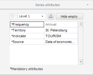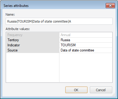 NOTE. If the data source already contains time series with specified attributes values, series observations values are displayed in the data table.