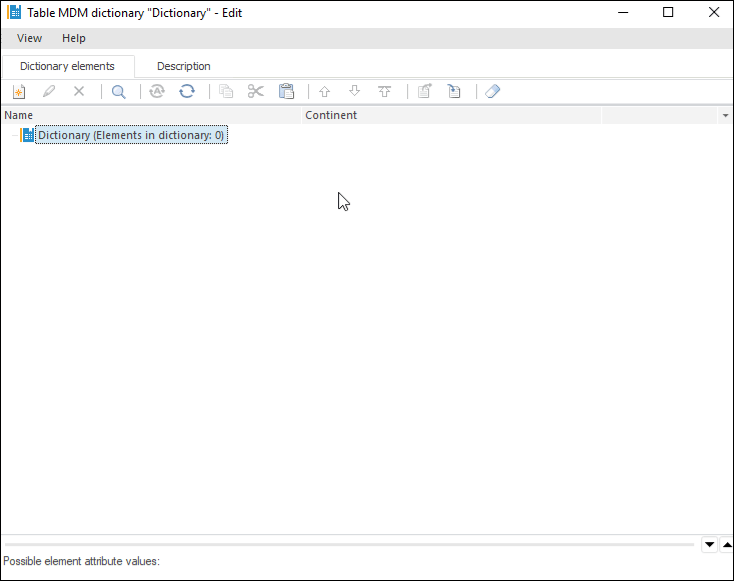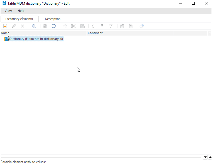 To create an element, select a parent element in the element tree on the Dictionary Elements tab, then: