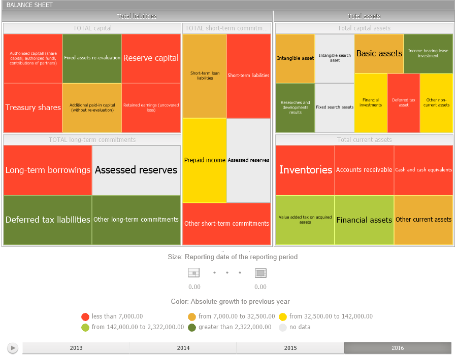 A tree map allows hierarchical data to be displayed as a set of nested rectangles. Each hierarchical branch is represented with a rectangle that consists of smaller rectangles, which are subbranches. Area of each rectangle is proportional to value of the corresponding hierarchical element. Rectangle color also depends on value of the hierarchical element.