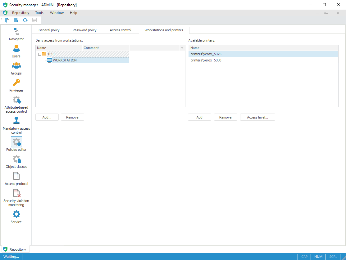When mandatory access control is used, it is also necessary to take into account the Allow Object Printing checkbox selected for security level.