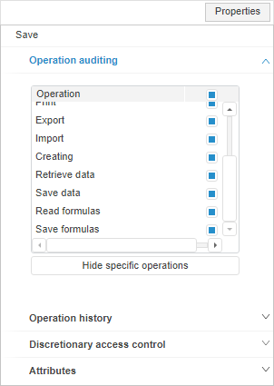 NOTE. The Specific Operations string and the Specific Operations/Show Specific Operations button are not available if specific operations are not used for this object type, or the dialog box or side panel are opened for several object types.