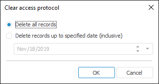 Before clearing it is prompted to save access protocol to file. If the protocol is successfully saved, access protocol clearing starts. After the clearing is executed, the protocol displays a record about clearing results.