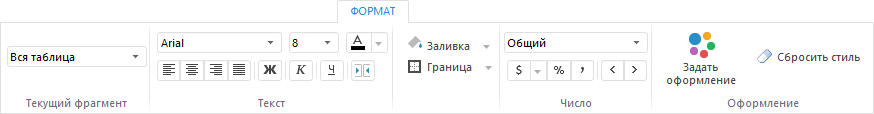 For areas: dimension, level, element - it is available to set up different formatting for headers and data. To do it, use the Headers / Data buttons in the Current Fragment group. Only one button can be hold, on clicking one button, the other is automatically released. By default the Data button is hold.