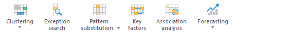 From reporting tool of Foresight Analytics Platform. Click the button corresponding to the required analysis method in the Data Mining group on the Advanced Analytics ribbon tab: