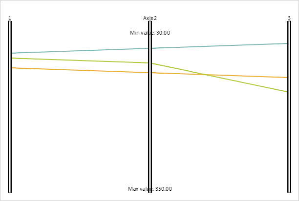 Executing the example requires the ParallelCoordinates component named coord (see Example of Creating the ParallelCoordinates Component). Set minimum and maximum values of filtering range for the chart second axis, set masks for corresponding axis labels and a new caption: