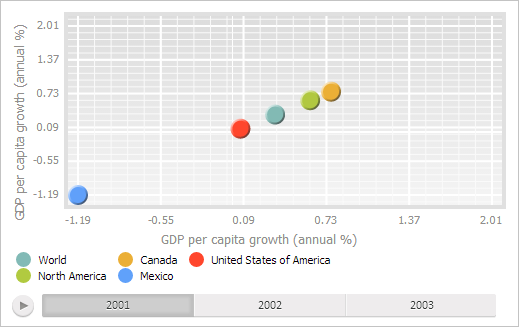 After executing the example the legend is displayed at the left below the bubble chart plot area: