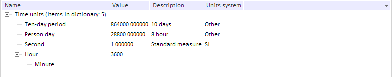 Two elements are created as the result of the example execution. The second element Minute with the 1712 key is embedded into the Hour element with the 1711 key. The value 3600 is set for the first element:
