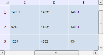 To execute the example, the HTML page must contain the TabSheet component named tabSheet (see Example of Creating the TabSheet Component). Scroll the table to the column with the index 4 and row with the index 3 so that these column and row are the last visible in the table: