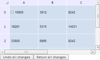 To execute the example, the HTML page must contain the TabSheet component named tabSheet (see Example of Creating the TabSheet Component). Change values of two cells, next show type of executed commands, old and new cell values. Add two buttons that will undo all changes and redo all changes: