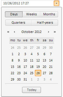 To execute the example, link the component library PP.js, visual styles PP.css and resources file (resources.en.js). In the BODY tag add a DIV element with the identifier DTP1. Further the Javascript code with the help of which the DateTimePicker component is located on the HTML page is given:
