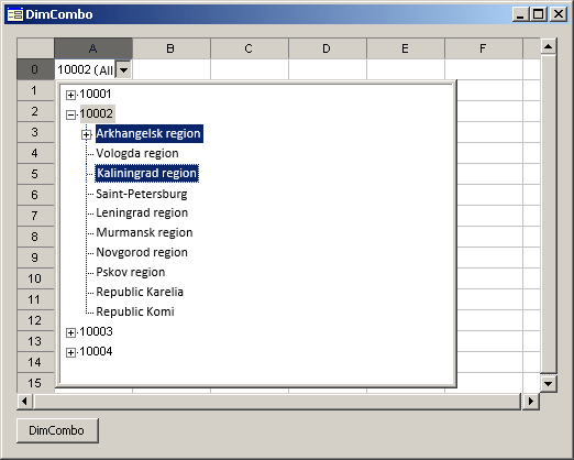 NOTE. The following conditions should be met on moving the cell in editing mode for correct restitution of dictionary selection used in the DimCombo control: