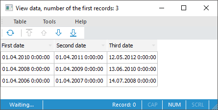 On executing the example a new data provider will be created in ETL task - Import from text. The provider will be linked to the specified text file, various formats will be preconfigured to parse dates in various fields. As a result of import, the following values will be obtained: