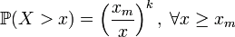 Where xm, k > 0. Then it is said that X has Pareto distribution with parameters xm and k. Density of the Pareto distribution looks as follows: