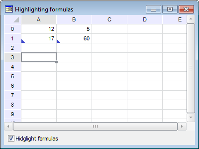 The HighlightFormulas property determines whether the table cells with formulas are highlighted.