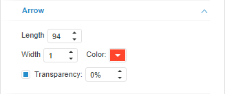 Transparency. Arrow transparency parameters. The checkbox is selected by default, and arrow transparency can be adjusted: 100% corresponds to transparency (the arrow becomes invisible), 0% corresponds to opacity.