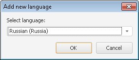 Add a language, to which the form is translated. Select the File > Add Language item in the resources' main menu. The dialog box opens: