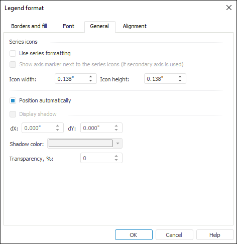 To set up general parameters of a legend, go to the General tab of the Legend Format dialog box.