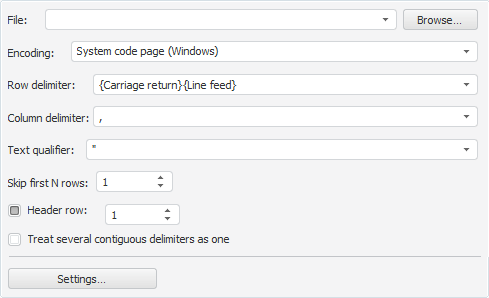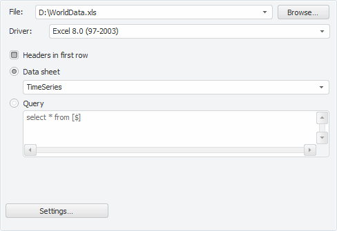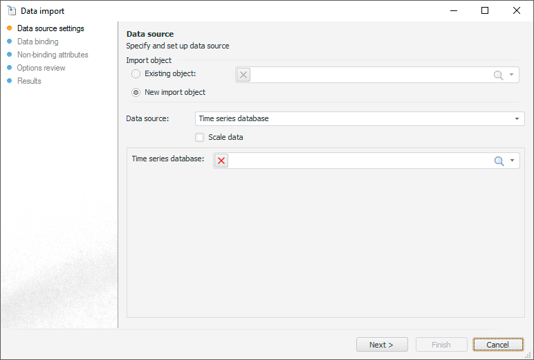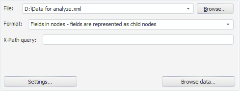 Data Source. Select data source type. After selecting the type, its setup parameters are displayed. The parameters set depends on the source type.