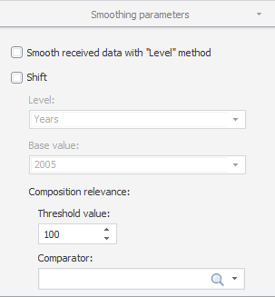 To set up parameters of data smoothing performed on the aggregation by indicators calculation, use the Smoothing Parameters side panel tab.
