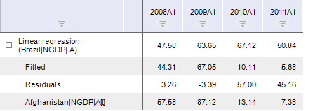 After the method is applied, the calculated series of the Linear Regression (<Explanatory_Variables_List>) type based on the selected series and containing calculation results is added to the workbook. For example: