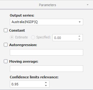 Confidence Limits Relevance. Set the importance level of confidence limits for a forecast series. Available values range: [0; 1]. The default value is 0.95.
