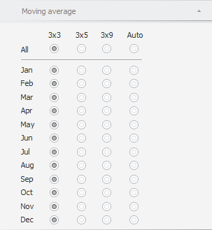Irrespective to the calendar frequency the tab contains the following radio buttons determining the moving average calculation method: