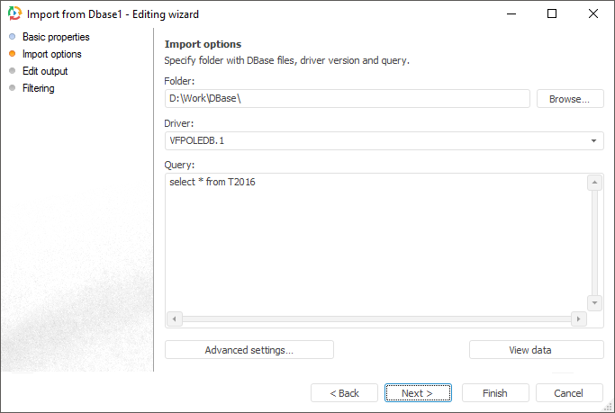 IMPORTANT. To import data by means of the VFPOLEDB.1 driver, use 32-bit version of Foresight Analytics Platform because this driver does not support the work with 64-bit applications.