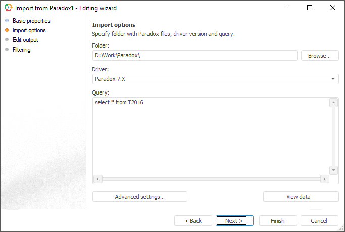 Specify a directory containing Paradox files and a driver for the current Paradox version.