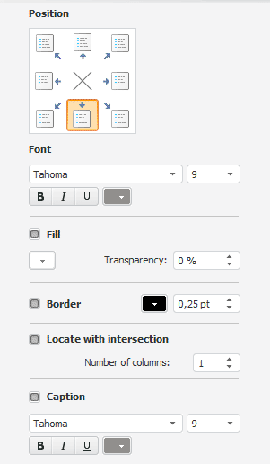To set up a legend, use the tab in the Format group of tabs on the side panel. Tab name depends on the legend to be set up. The following legend types are available: