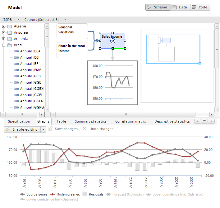 A working area is the main functional part for modeling and forecasting where the user works with models:
