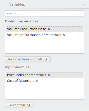 To determine the contents of controlling and input variables of criterion function, use the Variables side panel tab.