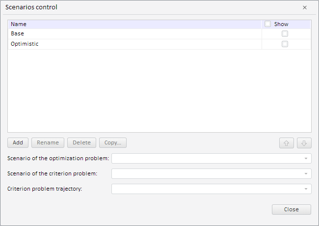 NOTE. If the Use Scenario Modeling checkbox is not available, the model contains the criterion function, which is calculated by means of scenario modeling.