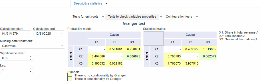 TIP. To calculate descriptive statistics by using the R methods, select the Use R on Calculating Descriptive Statistics checkbox on the Calculation tab in the Parameters dialog box. The feature is available, if in Foresight Analytics Platform has R package connected. For details see the How to Set Up Integration with R? section.