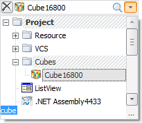 On entering first several characters of the element name the cursor moves to the first found element. This search type is executed in cycles, and only by the elements in the expanded part of element tree hierarchy.