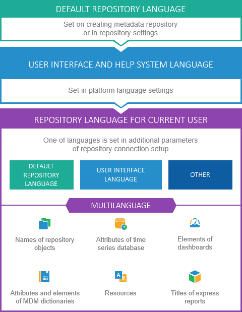 Foresight Analytics Platform has multilingual interface and help system and allows for translating repository contents: repository object names, MDM dictionary attribute and element names, time series database names, and so on.