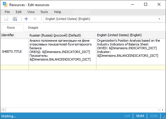 The express report title can support several user interface languages, for example, Russian and English. Such titles are named multilingual.