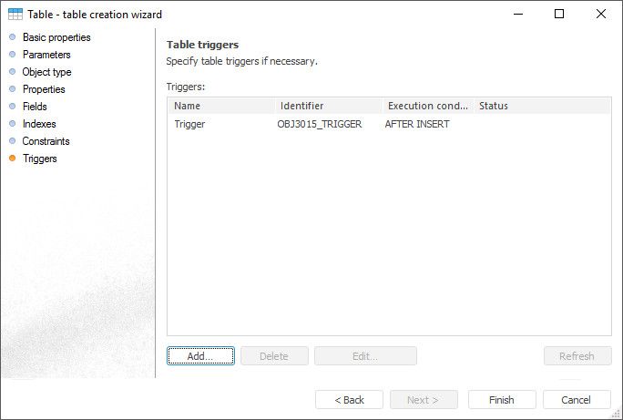 If a trigger is created outside Foresight Analytics Platform (for example, in TOAD), it can be refreshed. To do this, click the Refresh button.