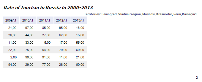 After executing these actions, the data area header is displayed in the left part of header or footer, the dimension selection is displayed in the central part on even pages.