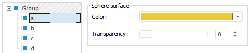 To set up a sphere selected in the list, define the following parameters in the Sphere Surface group:
