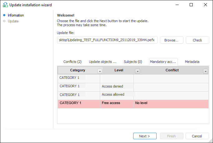Update cannot be installed when mandatory access control conflicts exist. Resolve the conflicts in the security manager manually and try again.