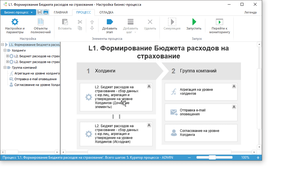 После создания шагов процесса перейдите к симуляции выполнения шагов.