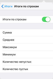 Переведите переключатель в положение . Откроется список с методами расчета итогов: